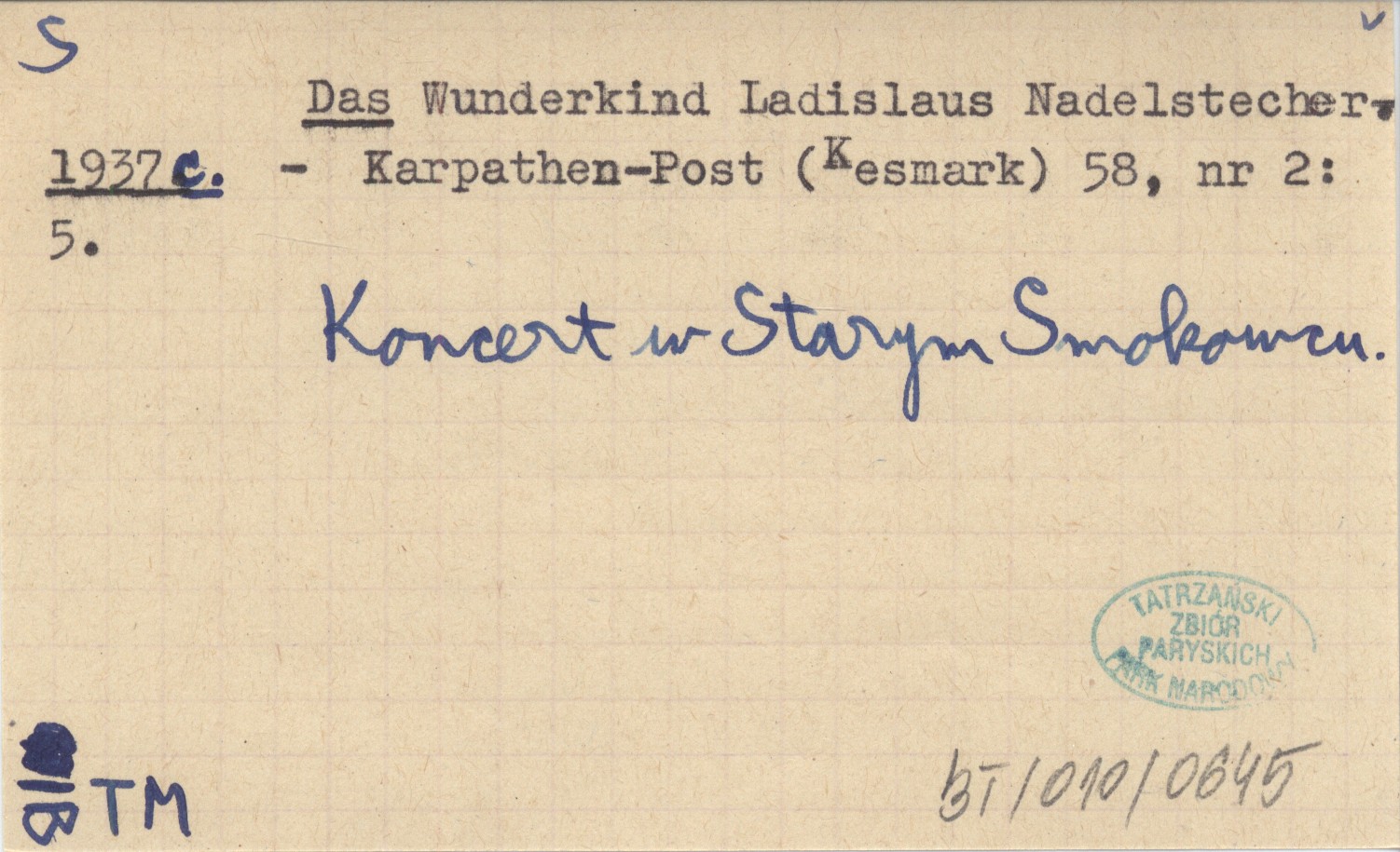Karpathen-Post (Kesmark) , 58, nr 2: 5. Koncert w Starym Smokowcu.