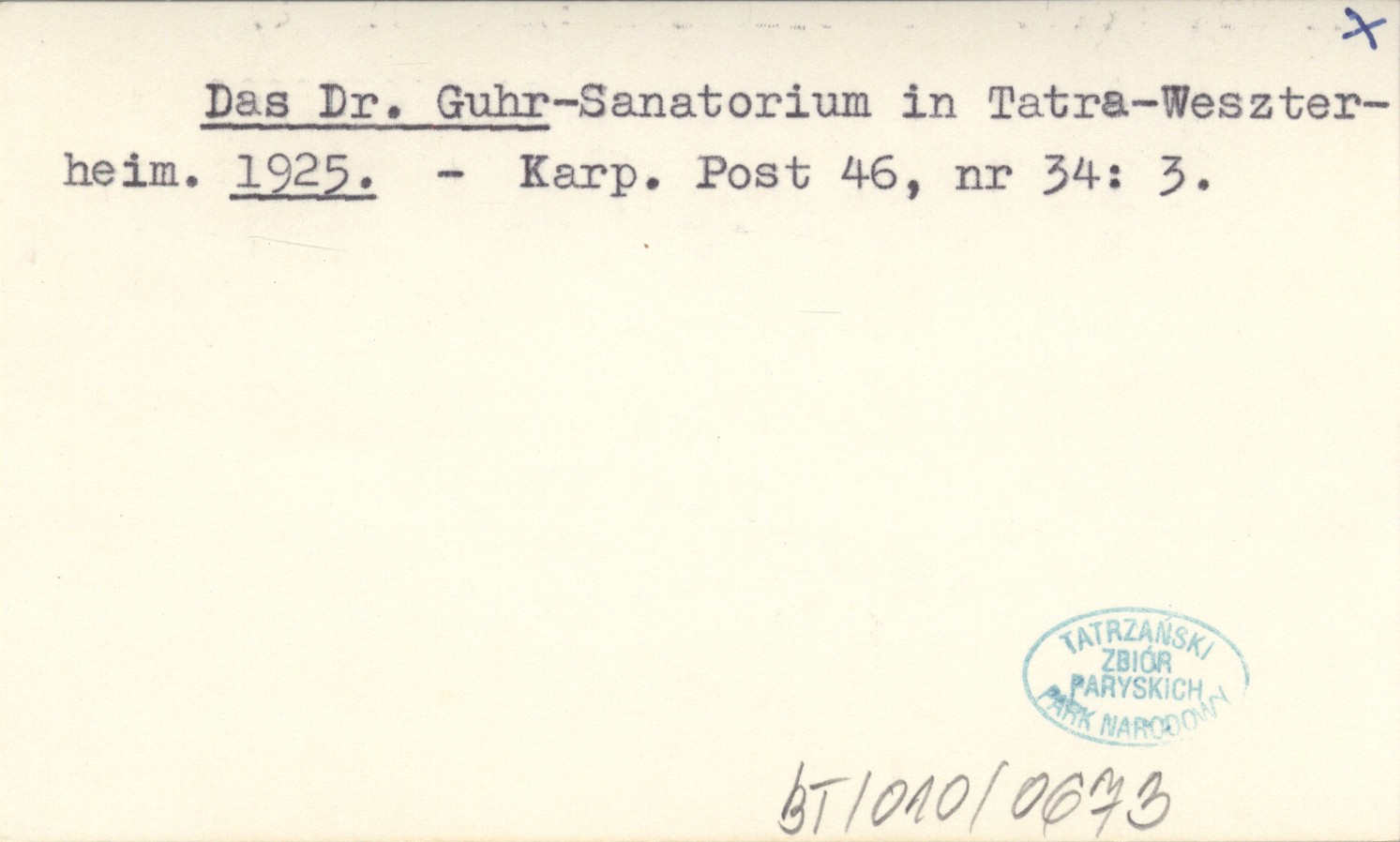 Das Dr. Guhr -Sanatorium in Tatra-Weszterheim. 1925