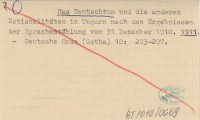 Das Deutschtum und die anderen Nationalitäten in Ungarn nach den Ergebnissen der Sprachenzählung vom 31 Dezember 1910. 1911