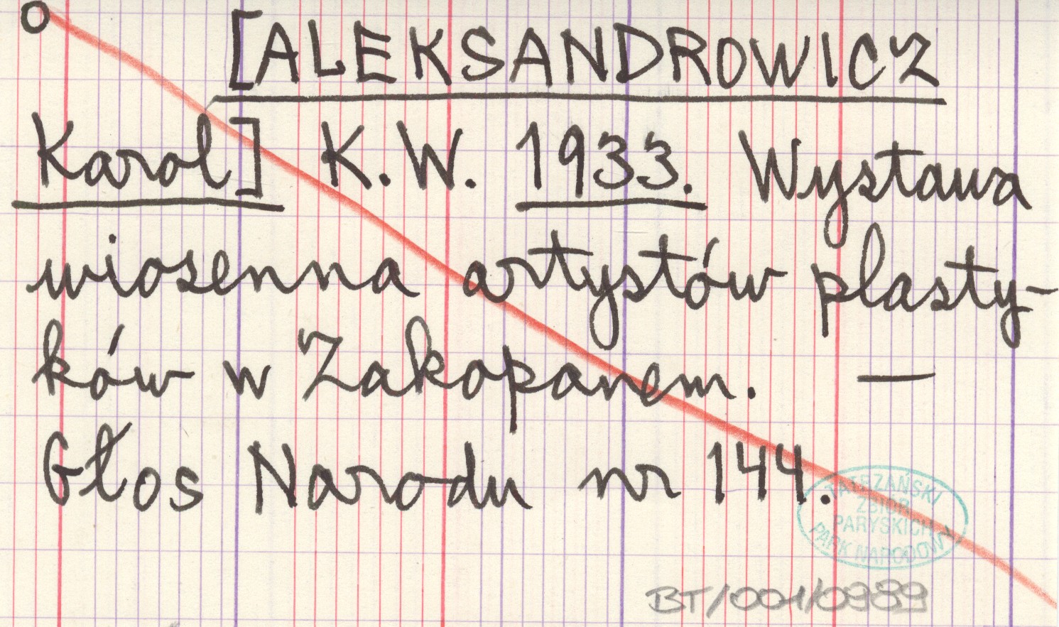 K. W. [ALEKSANDROWICZ Karol] 1933 Wystawa wiosenna artystów plastyków w Zakopanem.
