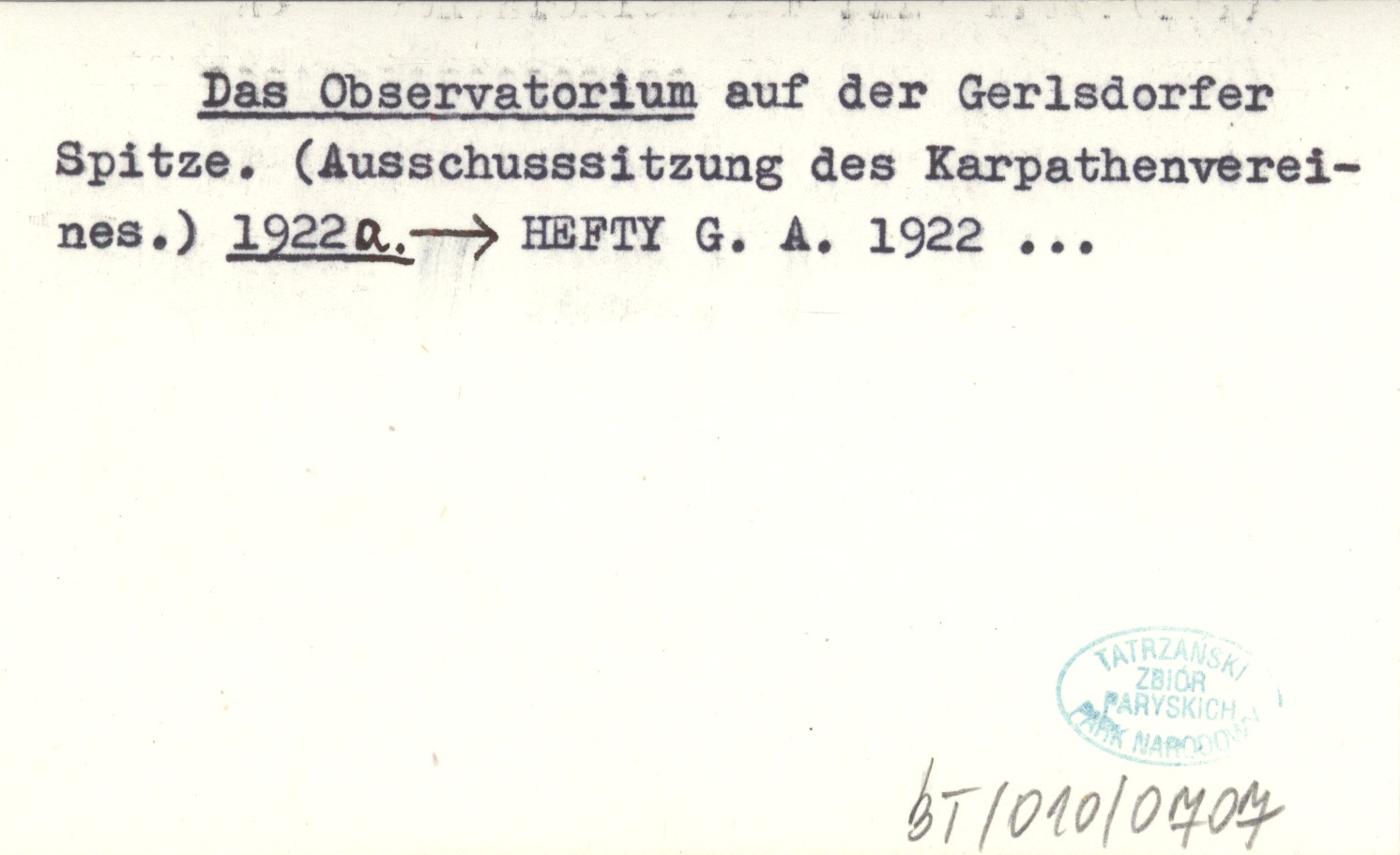 Das Observatorium auf der Gerlsdorfer Spitze. (Ausschusssitzung des Karpathenvereines). 1922 a
