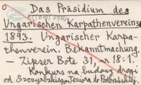 Das Präsidium des Ungarischen Karpathenvereines. Ungarischer Karpathenverein. Bekanntmachung. 1893
