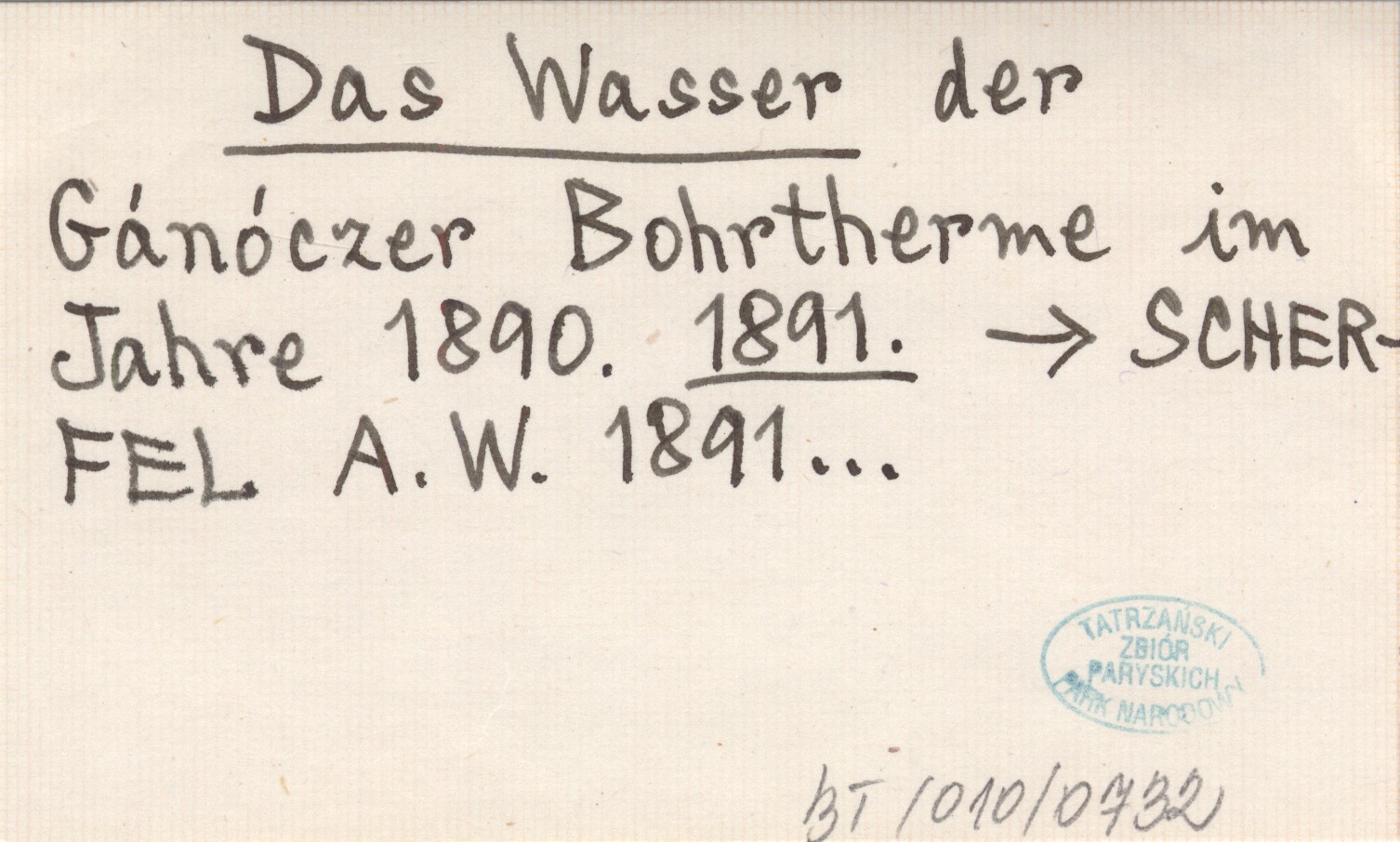 Das Wasser ser Gánóczer Bohrtherme im Jahre 1890. 1891