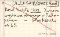 K. W. [ALEKSANDROWICZ Karol] 1933 Wystawa wiosenna artystów plastyków w Zakopanem.