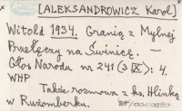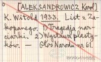 K. Witold [ALEKSANDROWICZ Karol] 1933 List z Zakopanego. 1) Tragedja narciarki. 2) Wystawa plastyków.