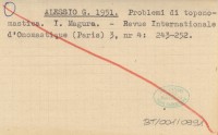 ALESSIO G. 1951 Problemi di toponomastica. I. Magura.