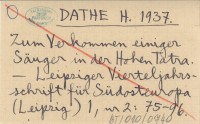 DATHE H. 1937 Zum Verkommen einiger Säuger in der Hohen Tatra.