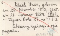 David Husz, geboren am 28. November 1813, gest. am 21. Januar 1889. 1889