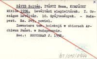 DÁVID Zoltán IVÁNYI, Emma. ; KOMJÁTHY, Miklós. ; 1956 Levéltári alapleltárak. I. Országos Levéltári. 10. Gyűjteményekk.