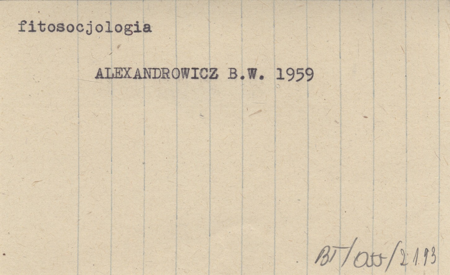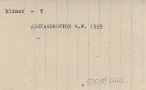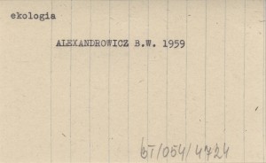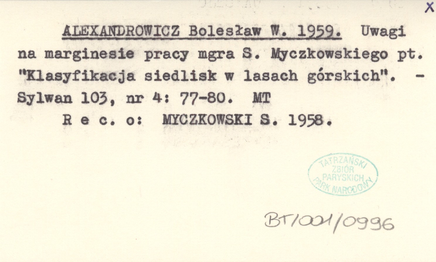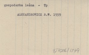 ALEXANDROWICZ Bolesław W. 1959 Uwagi na marginesie pracy mgra S. Myczkowskiego pt. "Klasyfikacja siedlisk w lasach górskich".