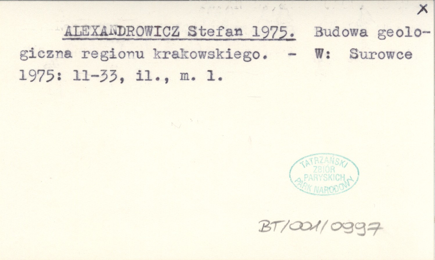 ALEXANDROWICZ Stefan 1975 Budowa geologiczna regionu krakowskiego.