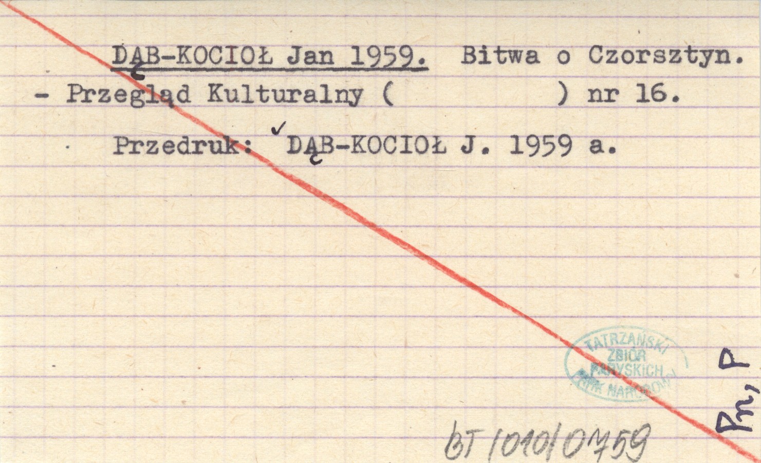 Przegląd Kulturalny, Nr 16. Przedruk: DĄB-KOCIOŁ J. 1959 a.