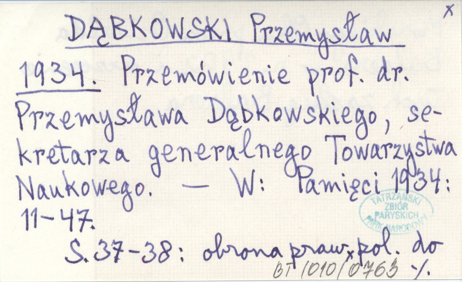 DĄBKOWSKI Przemysław 1934 Przemówienie prof. dr. Przemysława Dąbkowskiego, sekretarza generalnego Towarzystwa Naukowego.