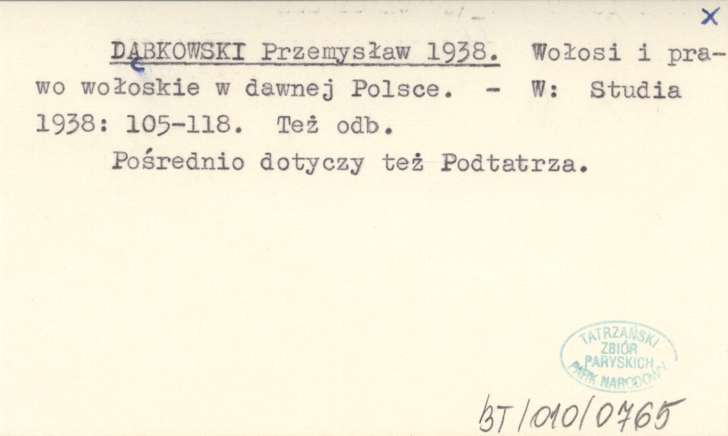 Studia 1938: 105-118. , Pośrednio dotyczy też Podtatrza. Też odb.