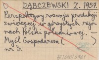 DˇBCZEWSKI Z. 1957 Perspektywy rozwoju produkcji zwierzęcej w górzystych rejonach Polski południowej.