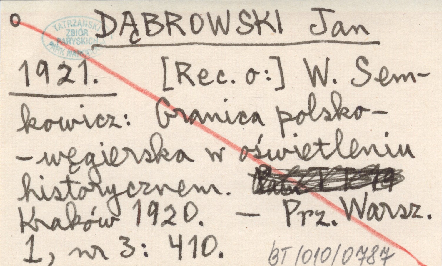 DĄBROWSKI Jan 1921 [Rec. o:] W. Semkowicz: Granica polsko-węgierska w oświetleniu historycznem. Kraków 1920.