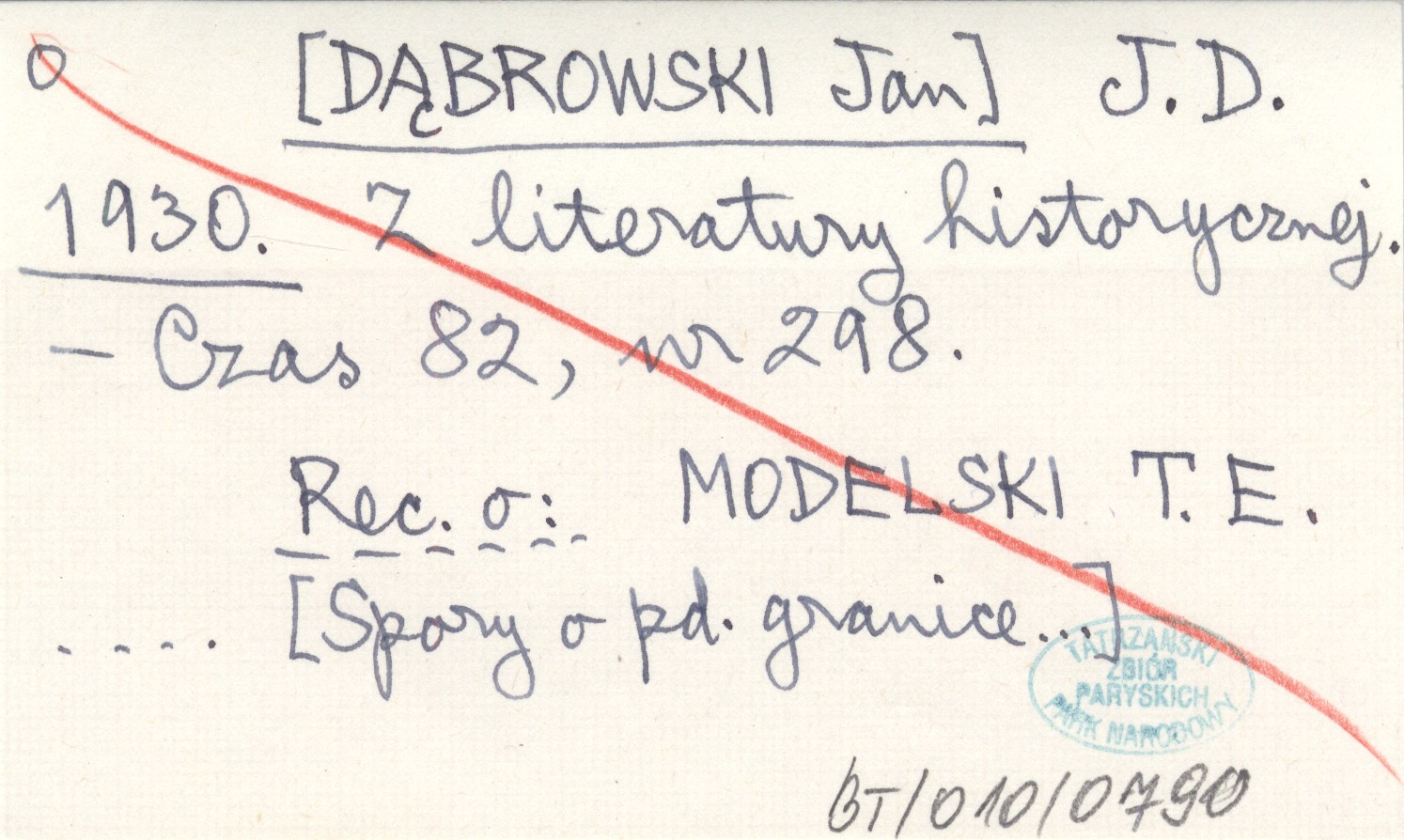 J. D. [DĄBROWSKI Jan] 1930 Z literatury historycznej.