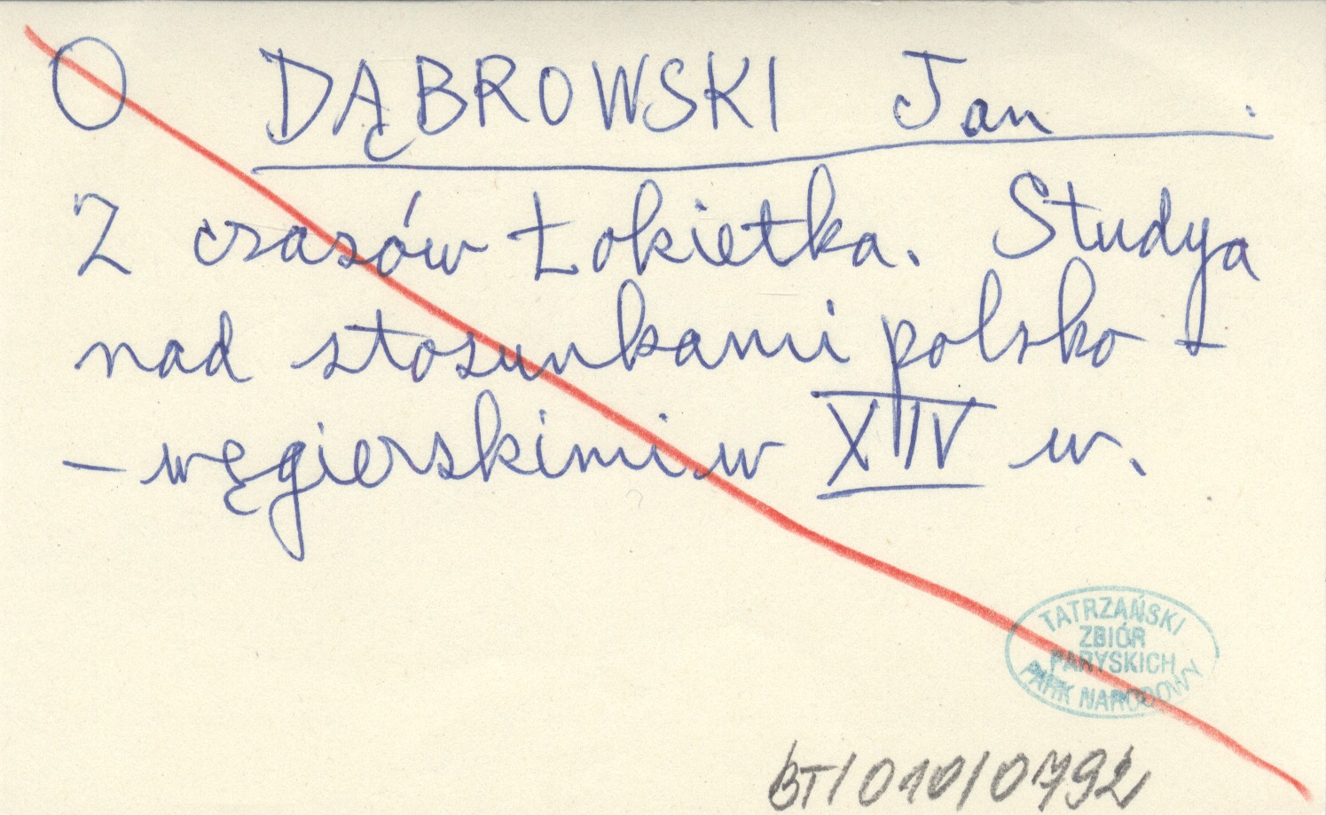 DĄBROWSKI Jan Z czasów Łokietka. Studya nad stosunkami polsko-węgierskimi w XIV w.