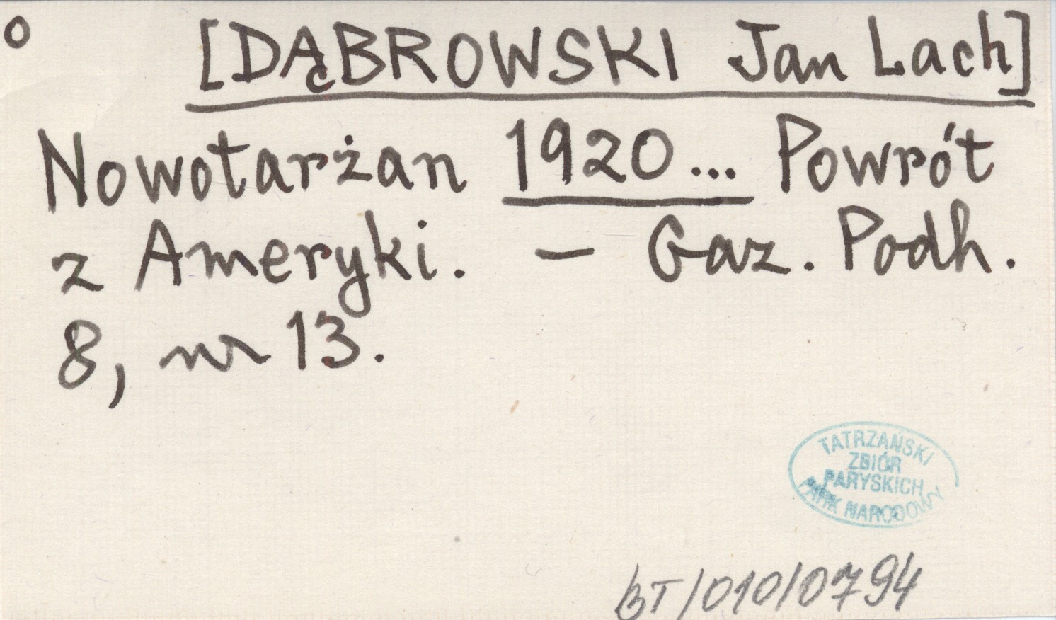 Nowotarżan [DĄBROWSKI Jan Lach] 1920... Powrót z Ameryki.