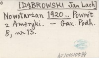 Nowotarżan [DĄBROWSKI Jan Lach] 1920... Powrót z Ameryki.