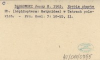 DĄBROWSKI Jerzy S. 1963 Erebia pharte Hb. (Lepidoptera: Satyridae) w Tatrach polskich.