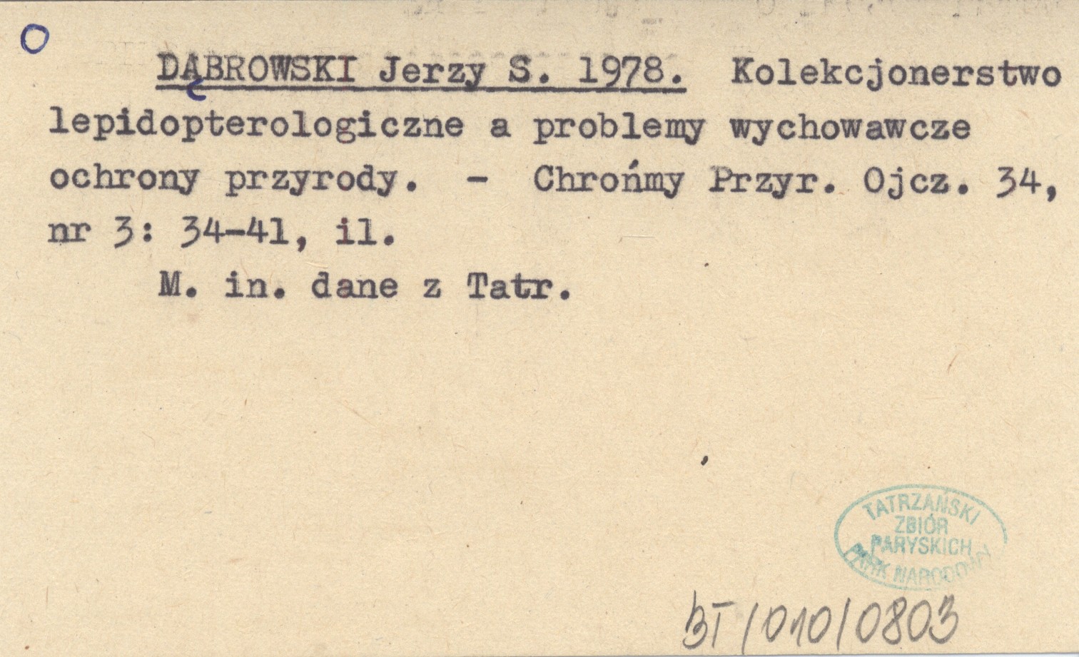 DĄBROWSKI Jerzy S. 1978 Kolekcjonerstwo lepidopterologiczne a problemy wychowawcze ochrony przyrody.
