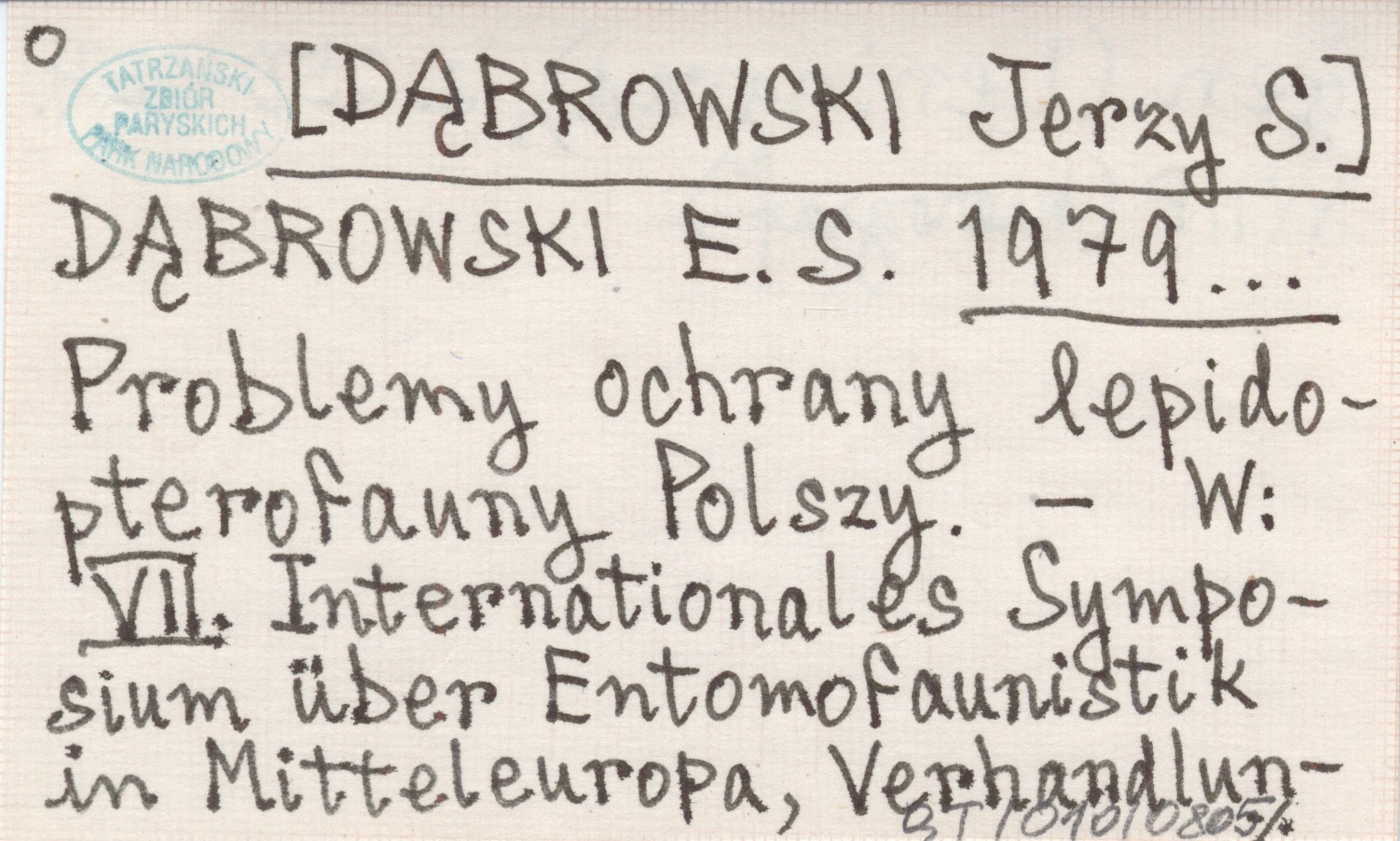 DĄBROWSKI E. S. [DĄBROWSKI Jerzy S.] 1979... Problemy ochrany lepidopterofauny Polszy.