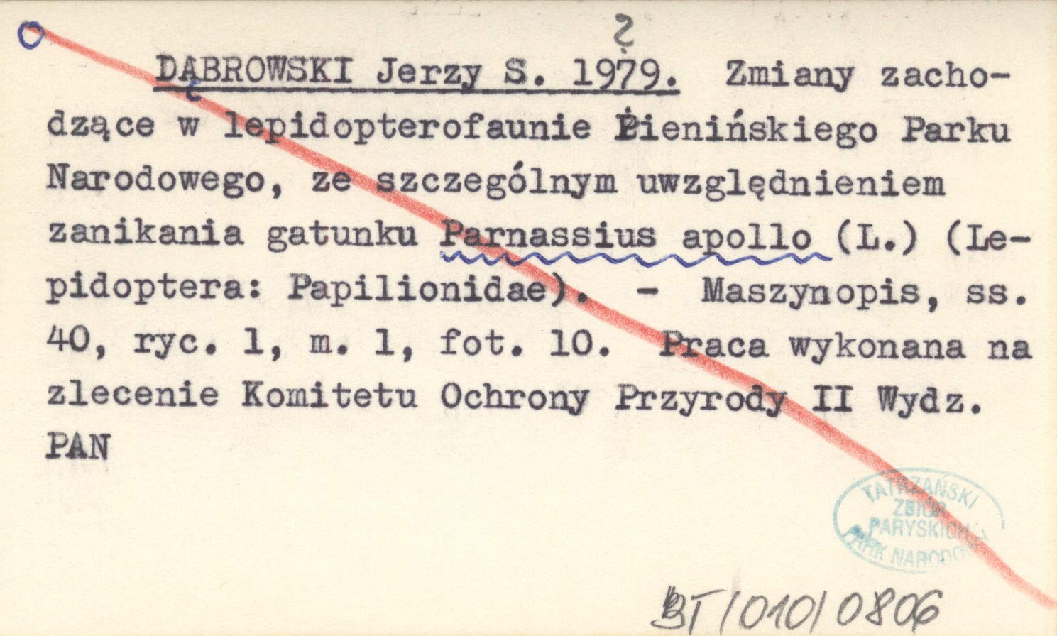 DĄBROWSKI Jerzy S. 1979? Zmiany zachodzące w lepidopterofaunie Pienińskiego Parku Narodowego, ze szczególnym uwzględnieniem zanikania gatunku Parnassius apollo (L.) (Lepidoptera: Papilionidae).