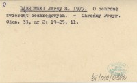 DĄBROWSKI Jerzy S. 1977 O ochronę zwierząt bezkręgowych.