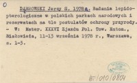 DĄBROWSKI Jerzy S. 1978 a Badania lepidopterologiczne w polskich parkach narodowych i rezerwatach na tle postulatów ochrony przyrody.