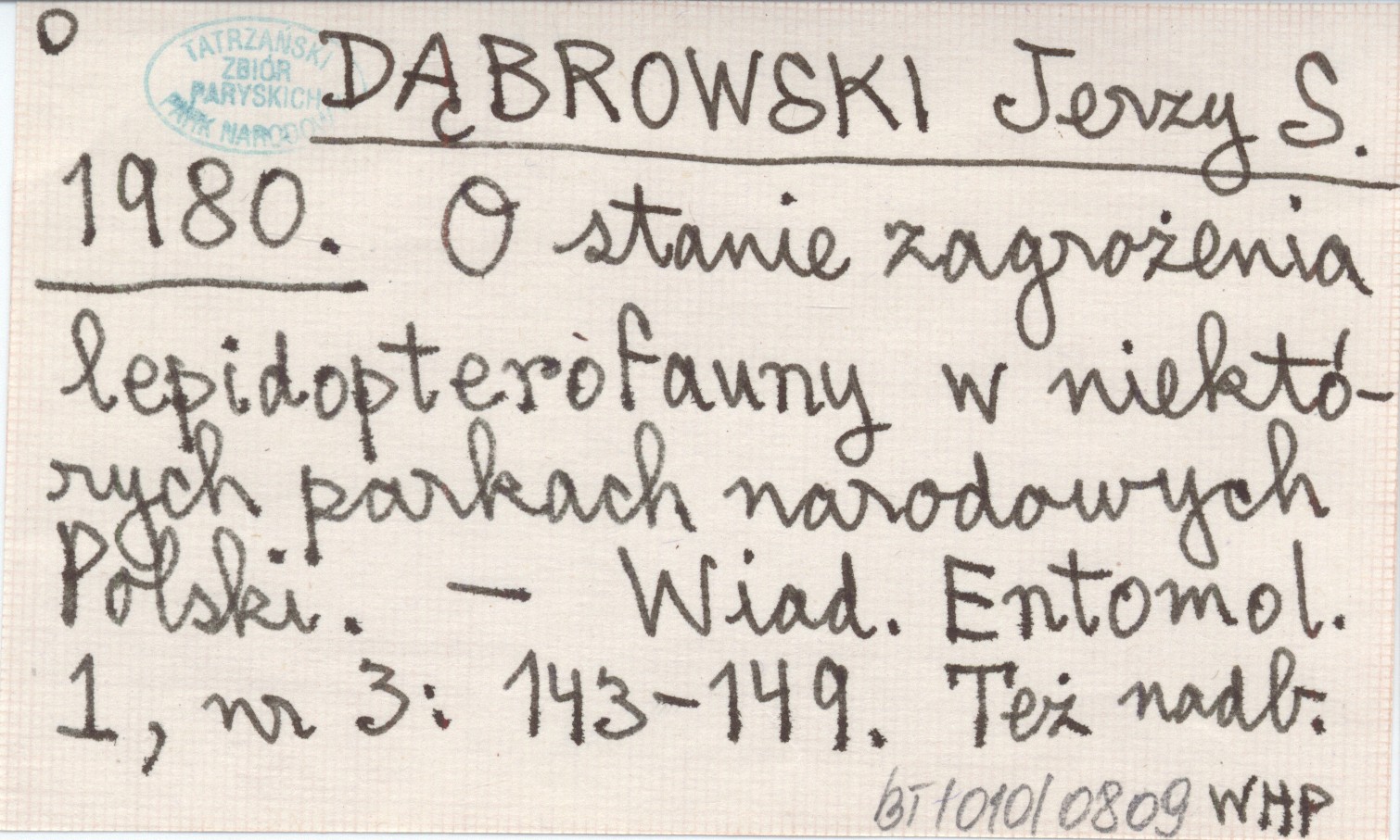 DĄBROWSKI Jerzy S. 1980 O stanie zagrożenia lepidopterofauny w niektórych parkach narodowych Polski.