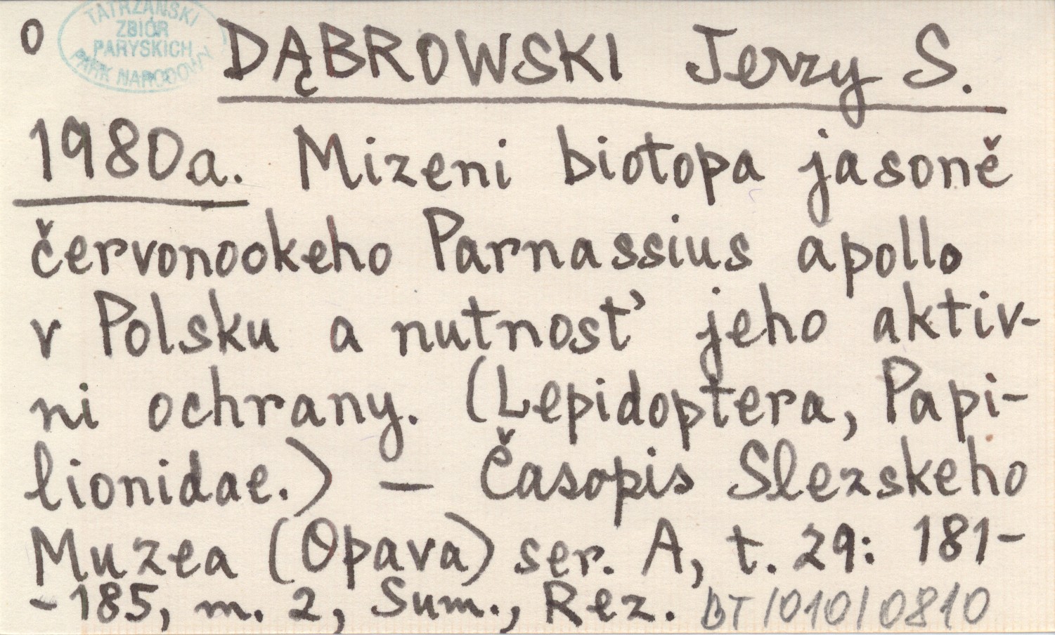 DĄBROWSKI Jerzy S. 1980 a Mizeni biotopa jasoně červonookeho Parnassius apollo v Polsku a nutnosť jeho aktivni ochrany. (Lepidoptera, Papilionidae).