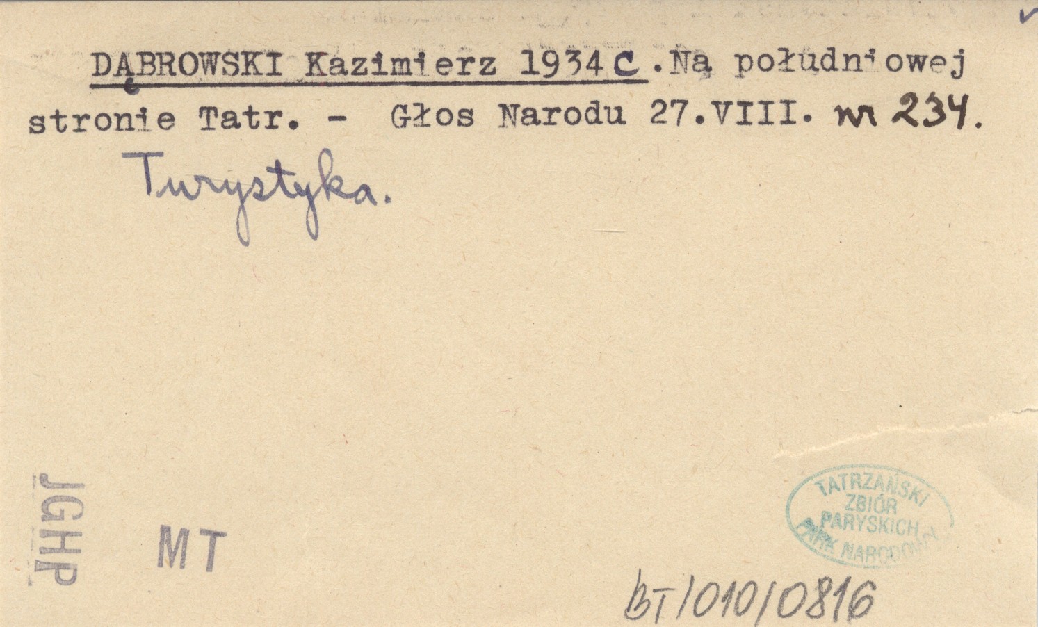 Głos Narodu, 27.VIII., nr 234. Turystyka.
