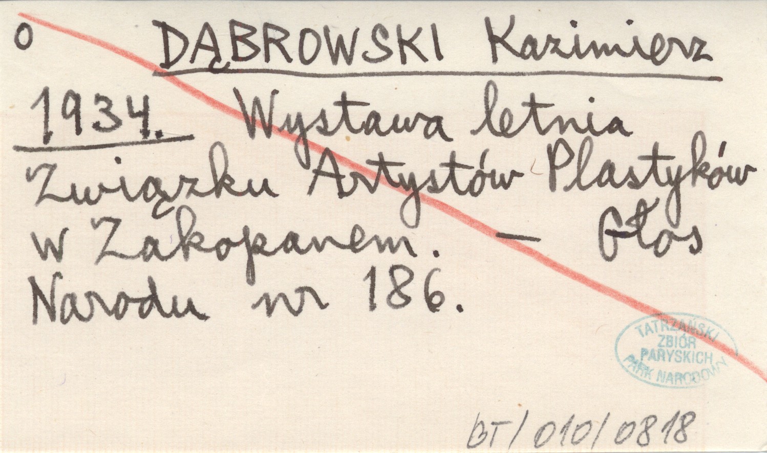 DĄBROWSKI Kazimierz 1934 Wystawa letnia Związku Artystów Plastyków w Zakopanem.