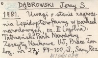 DĄBROWSKI Jerzy S. 1981 Uwagi o stanie zagrożenia Lepidopterofauny w parkach narodowych, cz. II (ogólna): Tatrzański Park Narodowy.