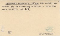 DĄBROWSKI Kazimierz 1934 Wyznaczenie nowego szlaku na Spiszu.