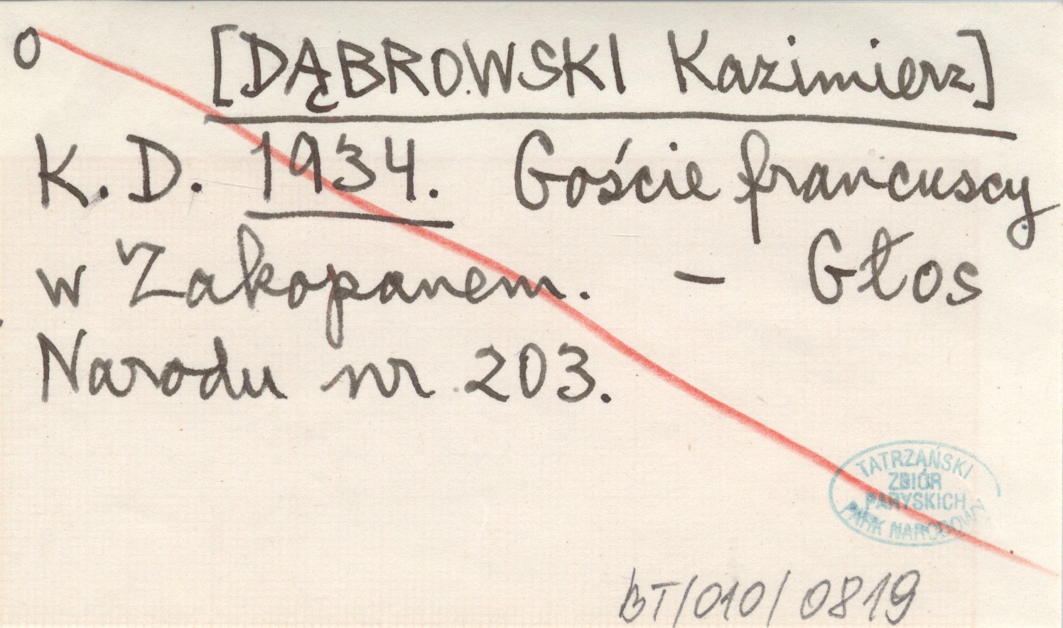 K. D. [DĄBROWSKI Kazimierz] 1934 Goście francuscy w Zakopanem.