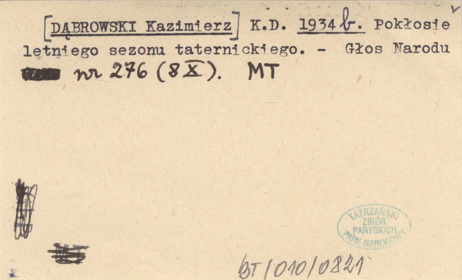 K. D. [DĄBROWSKI Kazimierz] 1934 b Pokłosie letniego sezonu taternickiego.