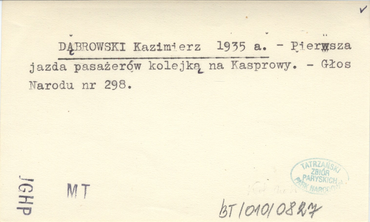 DĄBROWSKI Kazimierz 1935 a Pierwsza jazda pasażerów kolejką na Kasprowy.