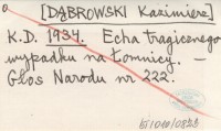 K. D. [DĄBROWSKI Kazimierz] 1934 Echa tragicznego wypadku na Łomnicy.