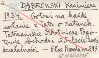 DĄBROWSKI Kazimierz 1934 Gotowi na każde wołanie z Tatr o ratunek. Tatrzańskie Ochotnicze Pogotowie obchodzi 25-lecie swej działalności.