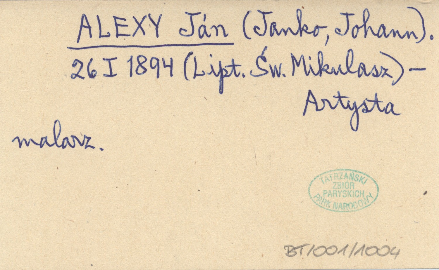 (Janko, Johann). 26 I 1894 (Lipt. Św. Mikulasz) - Artysta malarz.