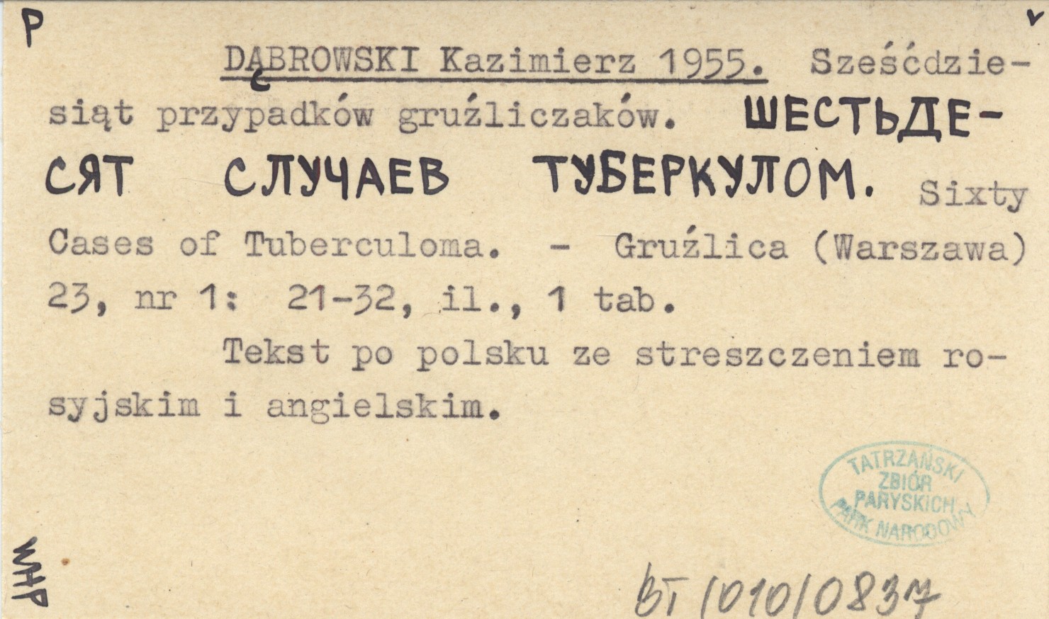 DĄBROWSKI Kazimierz 1955 Sześćdziesiąt przypadków gruźliczaków. Šest'desjat slučaev tuberkulom. Sixty Cases of Tuberculoma.