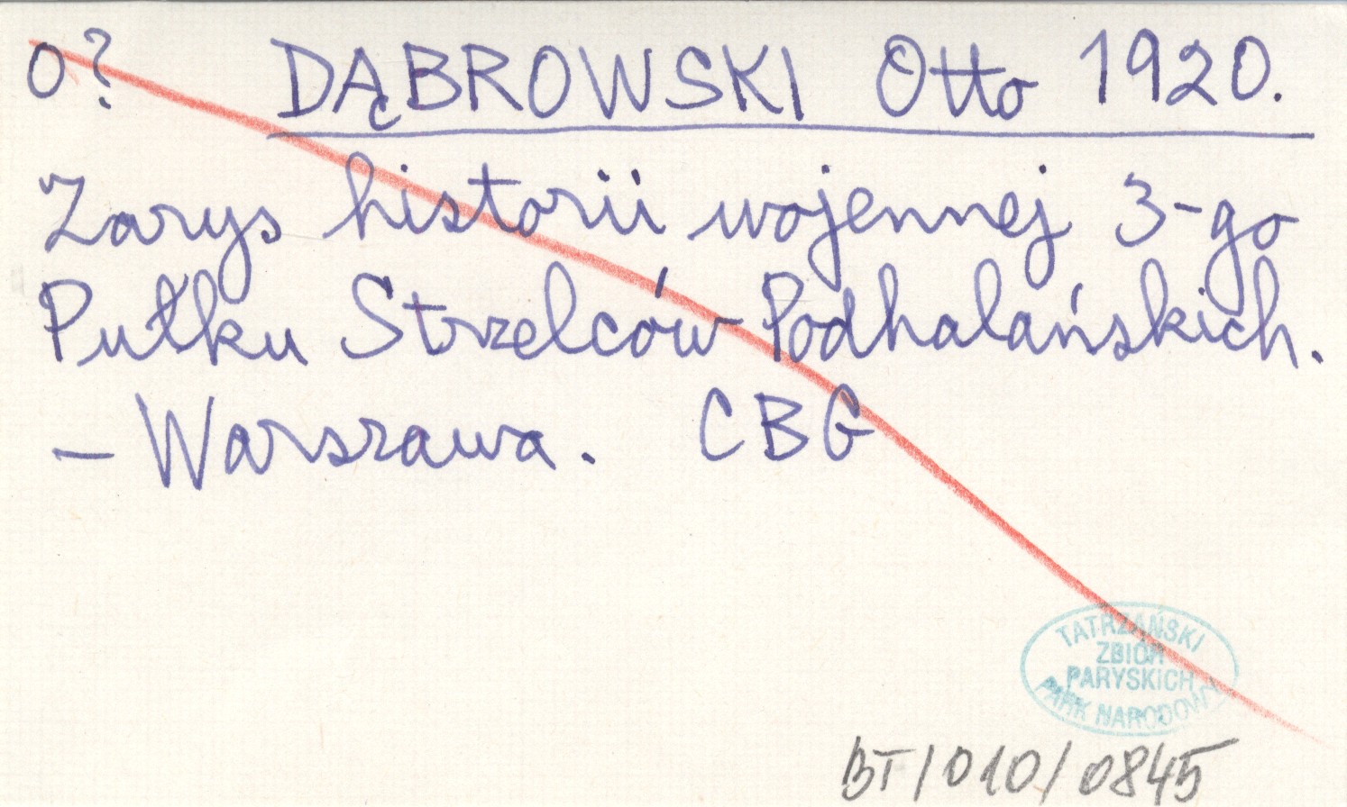 DĄBROWSKI Otto 1920 Zarys historii wojennej 3-go Pułku Strzelców Podhalańskich.