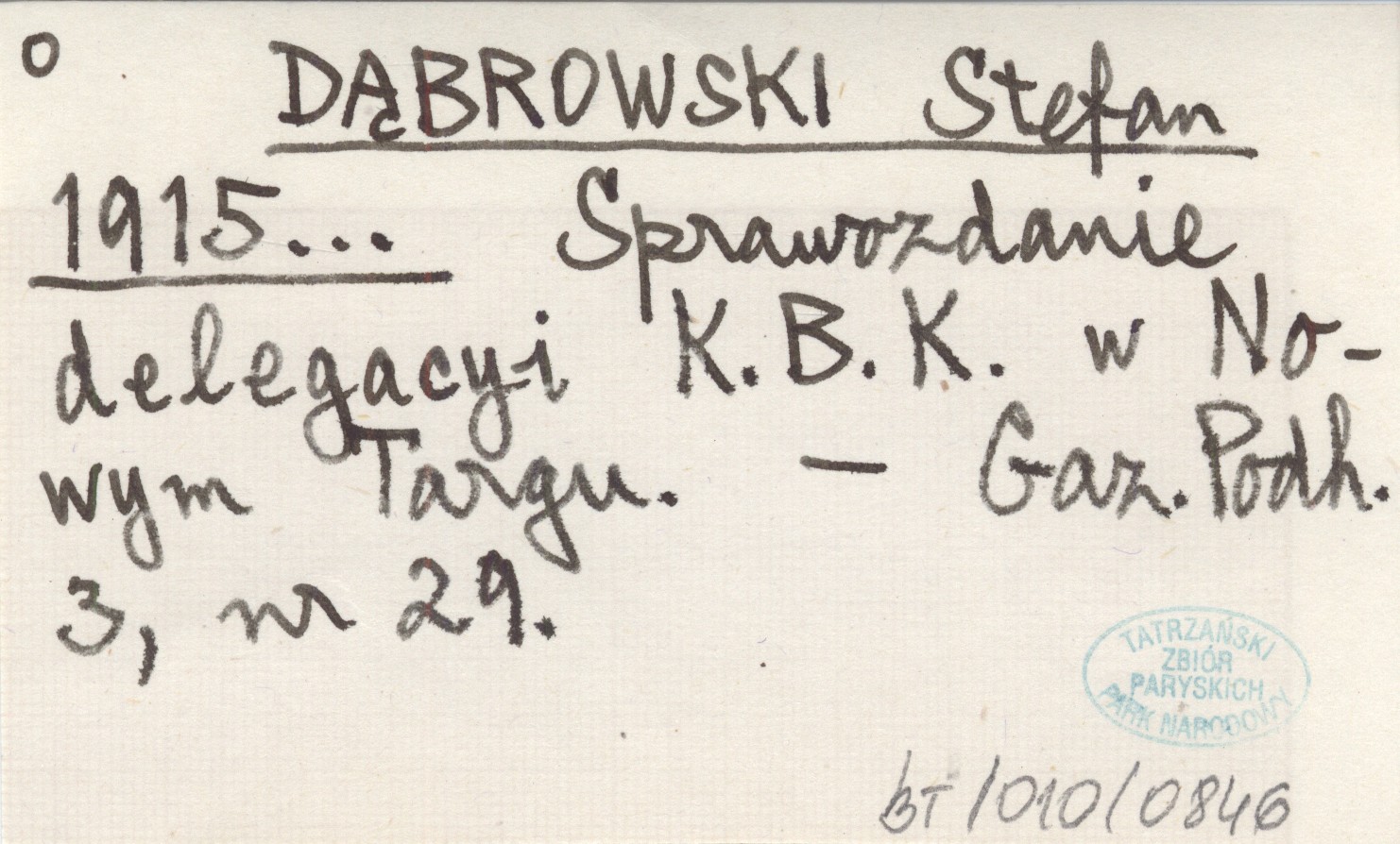 DĄBROWSKI Stefan 1915... Sprawozdanie delegacyi K.B.K. w Nowym Targu.