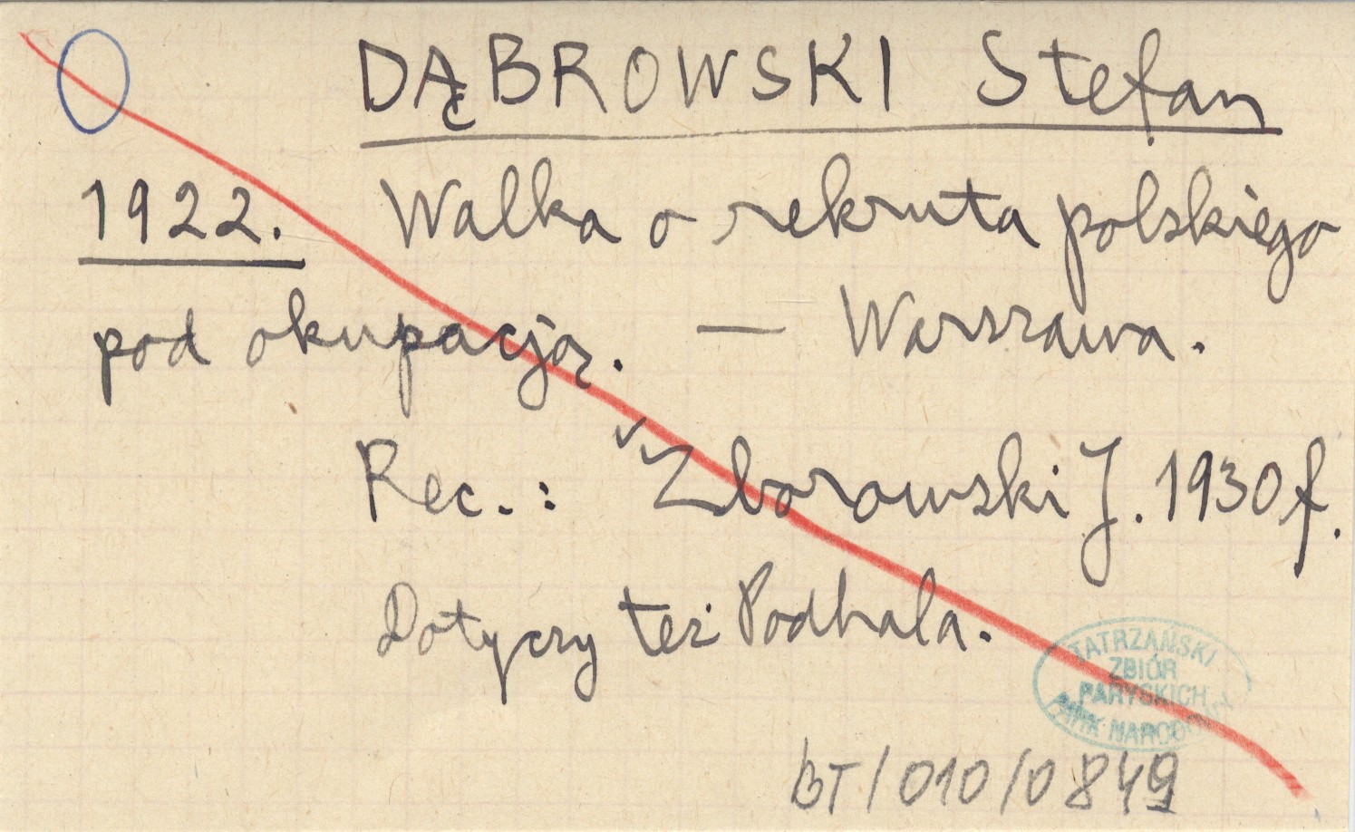 DĄBROWSKI Stefan 1922 Walka o rekruta polskiego pod okupacją.