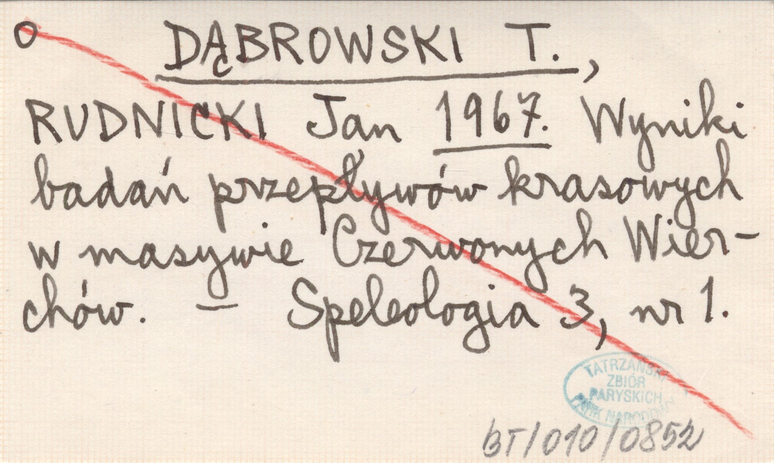 DĄBROWSKI T. RUDNICKI, Jan. ; 1967 Wyniki badań przepływów krasowych w masywie Czerwonych Wierchów.