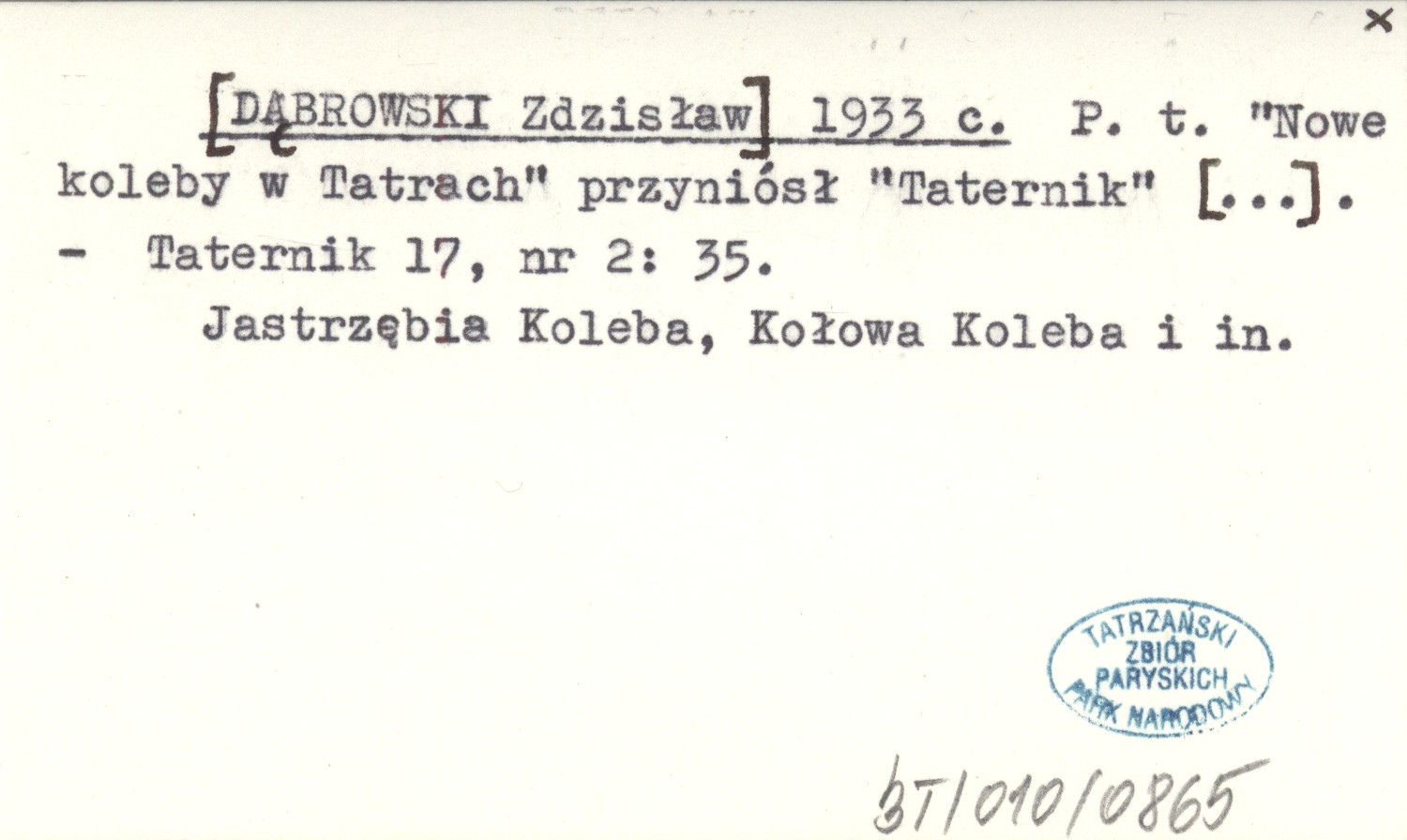 [DĄBROWSKI Zdzisław] 1933 c P. t. "Nowe koleby w Tatrach" przyniósł "Taternik" [...].
