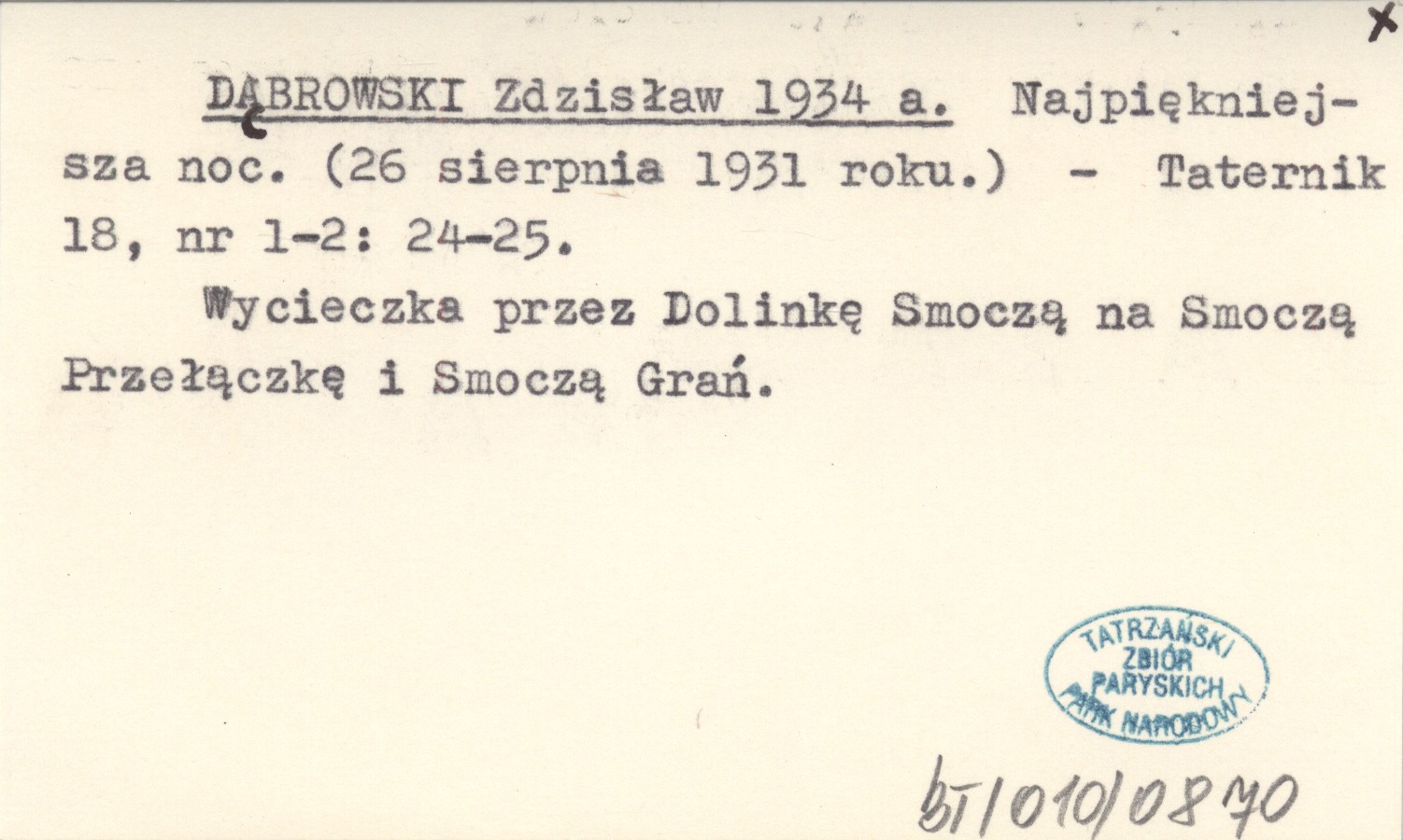 DĄBROWSKI Zdzisław 1934 a Najpiękniejsza noc. (26 sierpnia 1931 roku).