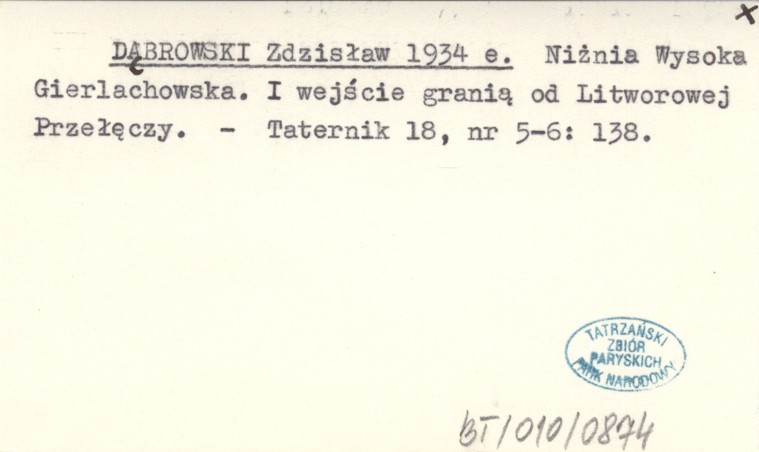 DĄBROWSKI Zdzisław 1934 e Niżnia Wysoka Gierlachowska. I wejście granią od Litworowej Przełęczy.